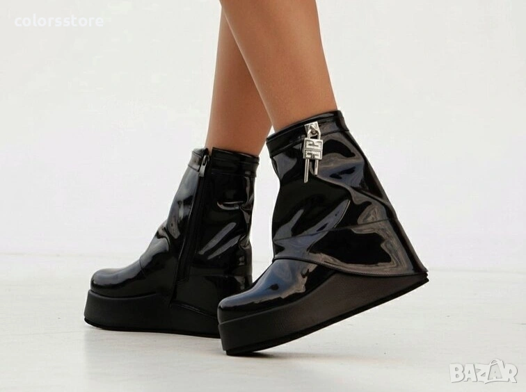 Боти на платформа - черен лак - DHG55 → Обява 35792788