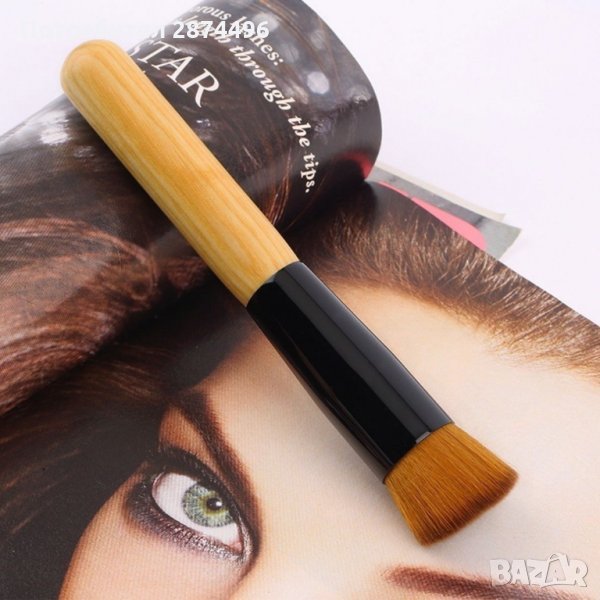 Скосена плоска четка за фон дьо тен и руж с дървена дръжка - 1бр.