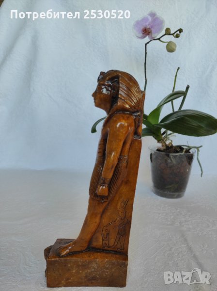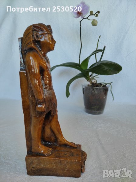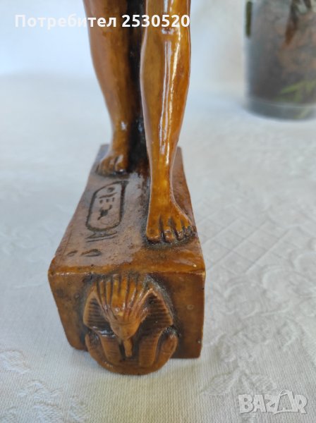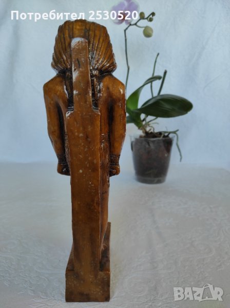 Статуетка е от кафяв египетски мрамор с лика на Озирис на постамента.