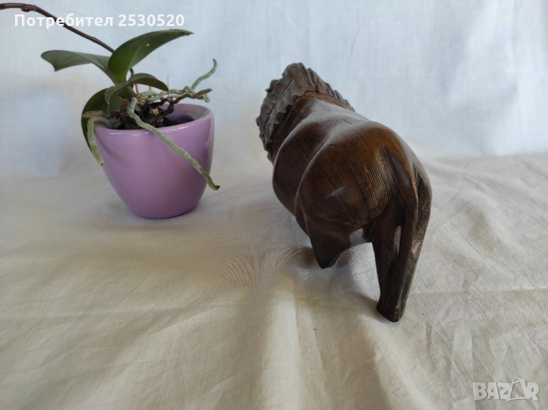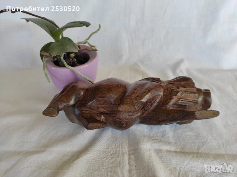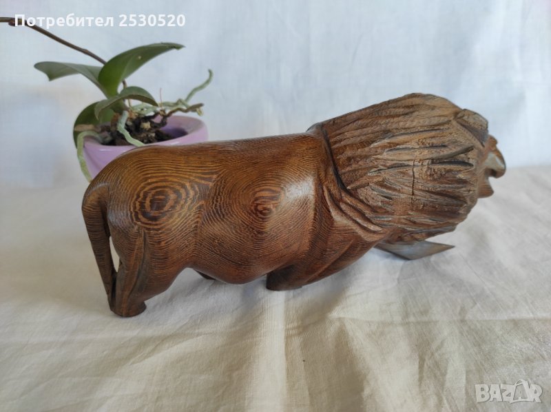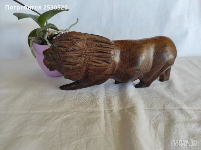 Красива абаносова африканска статуетка на лъв с множество красиви жили.