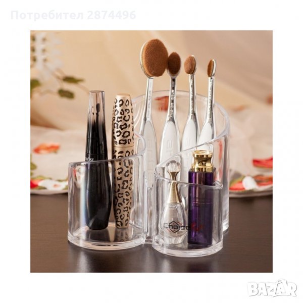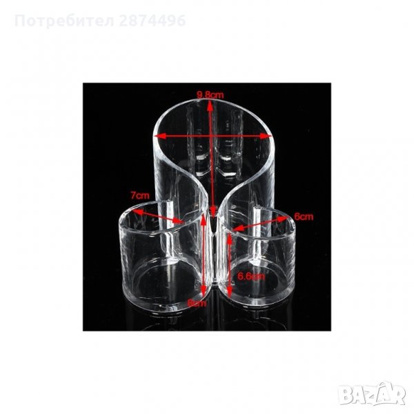 Органайзер за бюро или тоалетка, изработен от висококачествена прозрачна пластмаса.