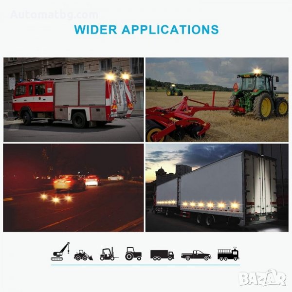 Аварийните светлини са подходящ за използване при камиони, трактори, пътна помощ, строителна и селскостопанска техника, пътна помощ, влекачи, кокто и при други едрогабаритни машини.