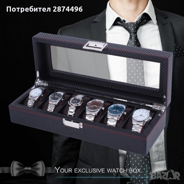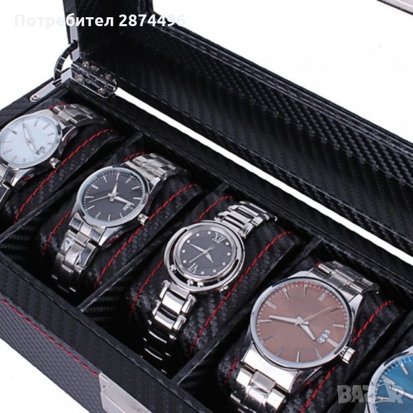 Кутия за съхранение на часовници е специално предложение за всеки любител на аксесоарите. Подходящ избор за мъже и жени, а капацитетът е 6 часовника. Разполага с мека вътрешност, която предпазва часовниците от нараняване.
