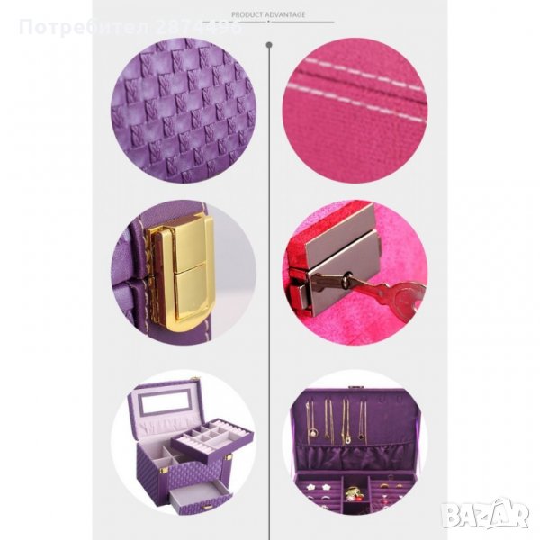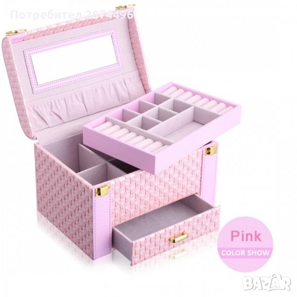 Това е едно ново ниво в организацията на бижутата. Моделът, който ви представяме е истинско произведение на изкуството. Дизайнът включва много място за вашите любими аксесоари часовници, пръстени, гривни и всичко останало. Разполага с голямо огледалце от вътрешната страна на капака, което можете да изтеглите, за да виждате по-добре как ви стоят бижутата, а защо не и да се гримирате по удобен начин.