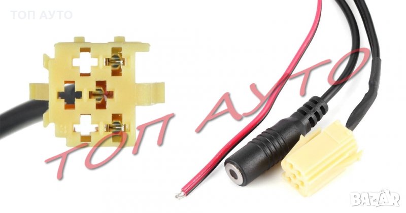 Модулът представлява Bluetooth, който се свързва към фабричната букса на радиото и се захранва от + през контакт и маса!