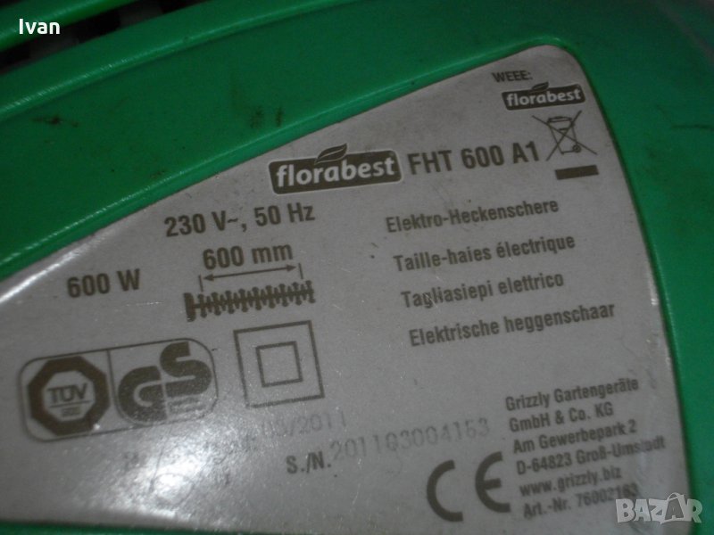 Силен и мощен 600 ватов голям храсторез,професионален модел на Флорабест.Машината се предлага за части или някой да си я оправи.Немско оригинално производство.Марка и модел-Florabest FHT600 A1.Машината тръгва веднага-работи,но не вдига нужната мощност,има и искрене на ниво четки или ротор.Описвам проблема визуално,храстореза не е тестван от техническо лице.С много запазен външен вид е.Мощност на мотора-600 вата,голяма дължина на шината-600мм,брой зъби-20 двойки,много добре фабрично заточени-лазерно заточване,упоменато с маркировка.Наличие на горна алуминиева шина за срещуположно движение на долният и горен режещи ножове.Преден голям предпазител.голяма масивна затворена дръжка,с мигновенна стоп спирачка-0,5 секунди.Наличие на оригиналният предпазен калъф на ножа.Цялостна дължина на машината-110см.