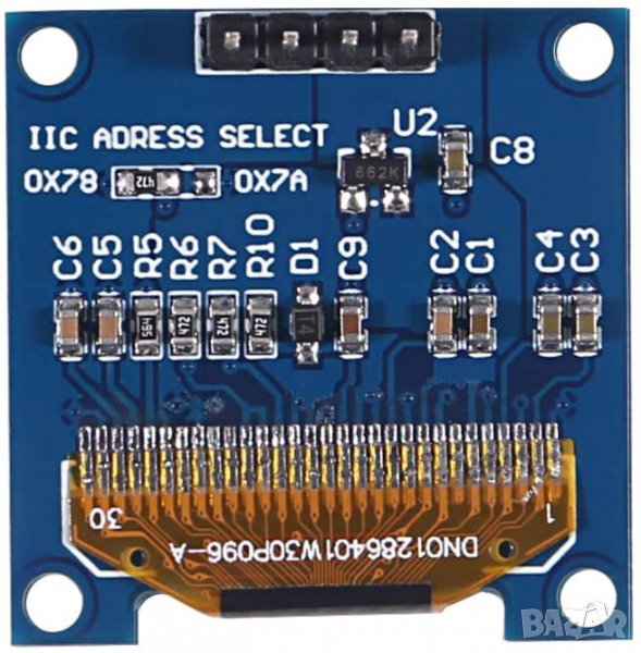 Опростен I2C интерфейс:需要само 4 пина (VCC, GND, SCL, SDA) за комуникация с микроконтролера, което спестява ценни GPIO пинове и опростява свързването. I2C адресът обикновено е 0x78 или 0x7A.