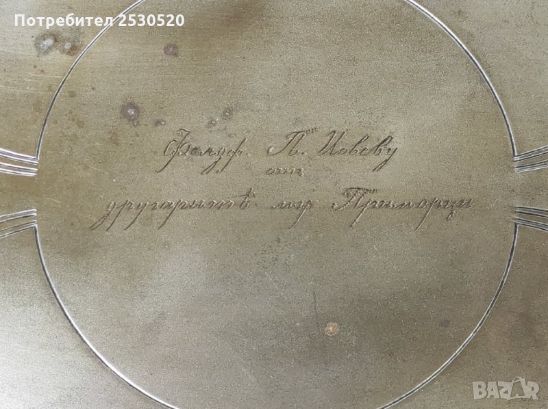 Комплектът е част от историята на българското военно дело.Подарена на : " Фелдфебел П.Иовеву от другарите му Приморци"