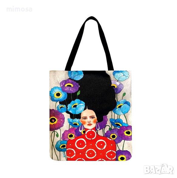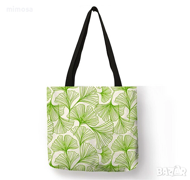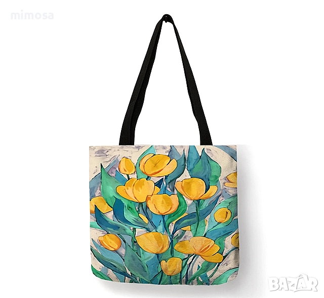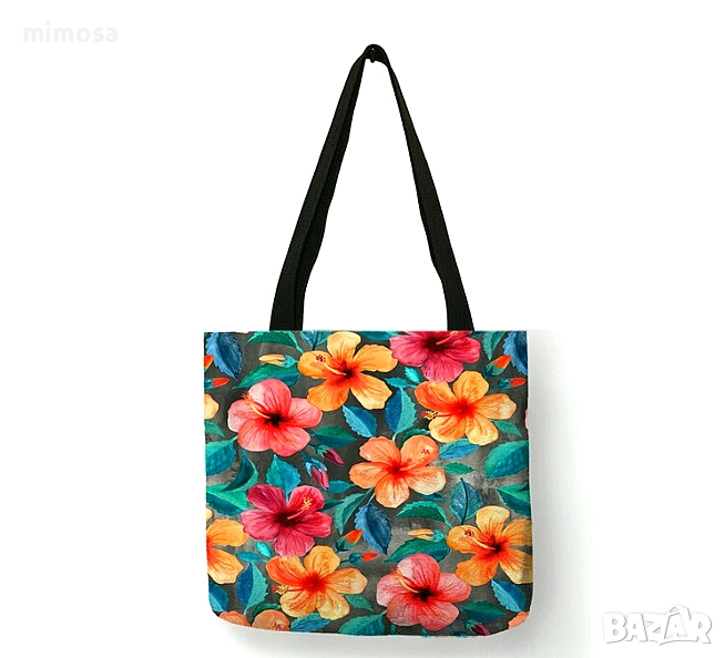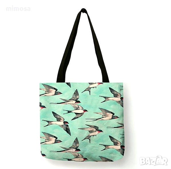 с принт от двете страни. Без вътрешни джобове и цип отгоре. С дълги дръжки за рамо. Стават за пазаруване, за плаж или за ежедневна употреба като дамска чанта.