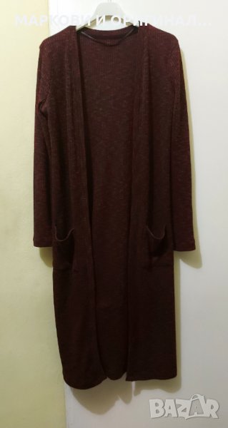 Дълга,стилна и права,дамска жилетка.Много нежна в цвят бордо с два джоба отпред.. М рр.,става и за Л рр.