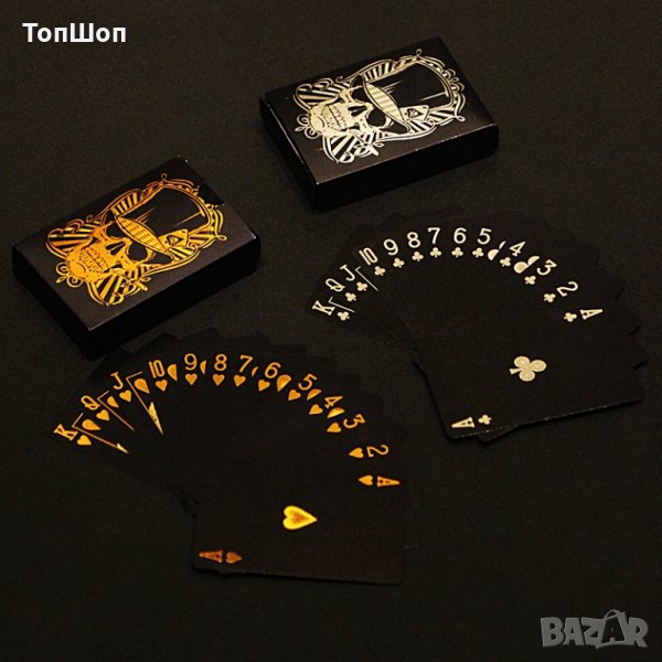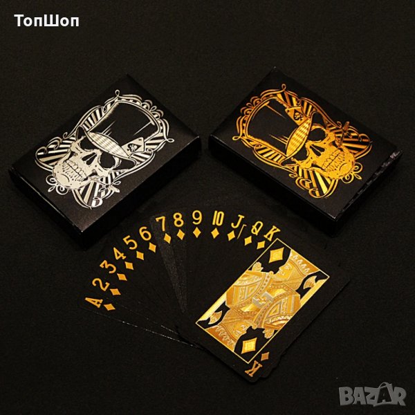 Карти за игра с черепи с 24к златно покритие , водоустойчиви . Перфектен дизайн за игра на покер или др. игри.