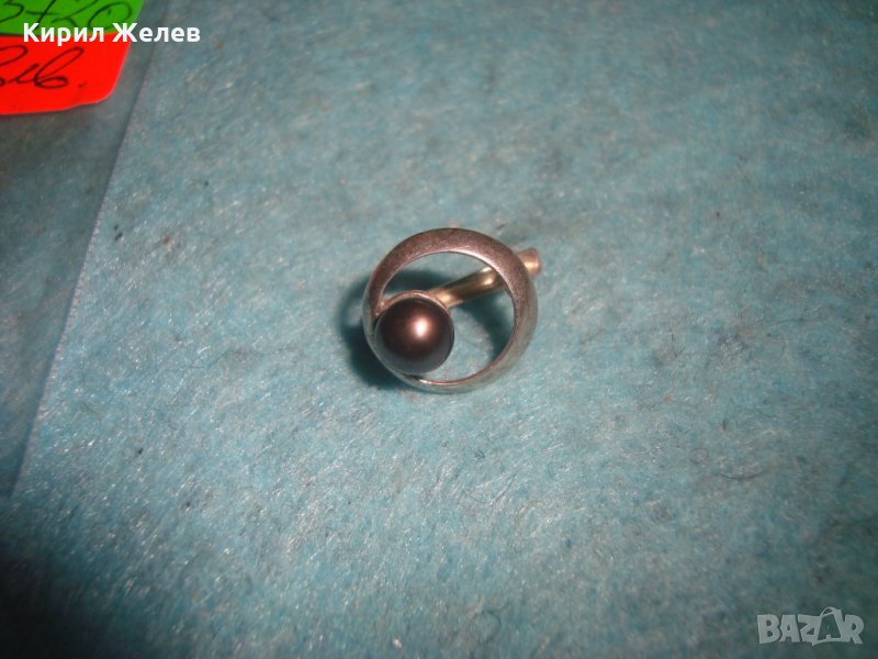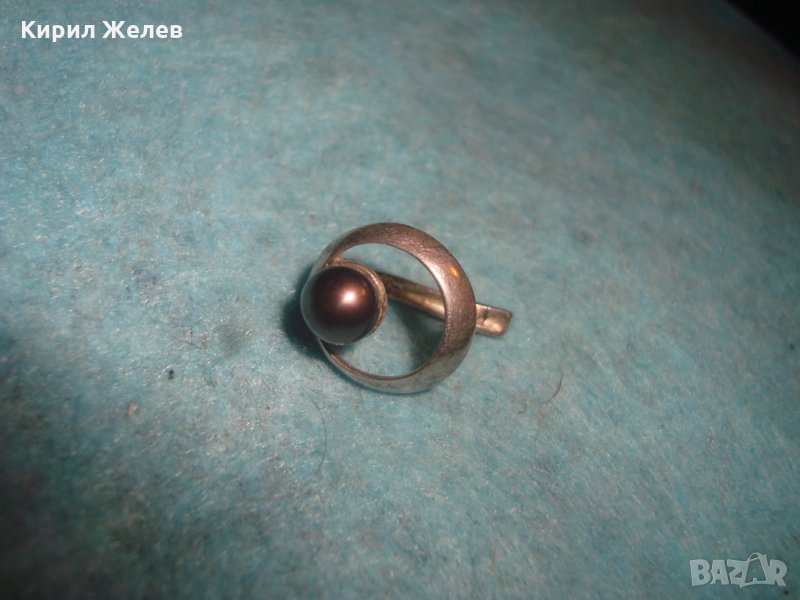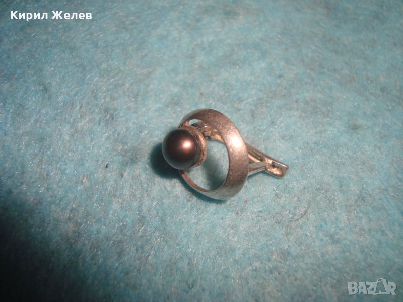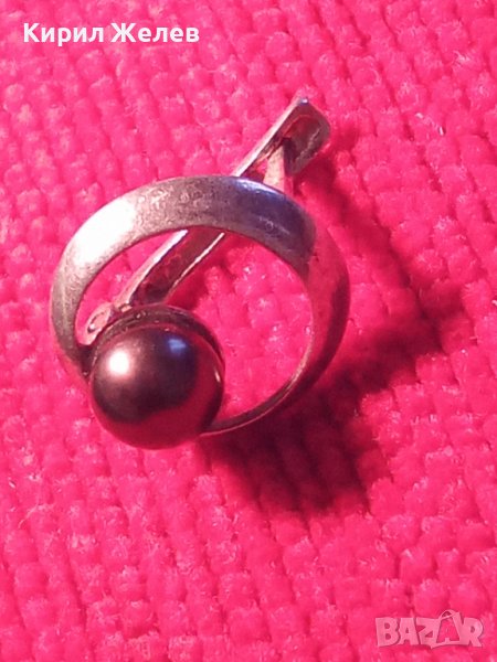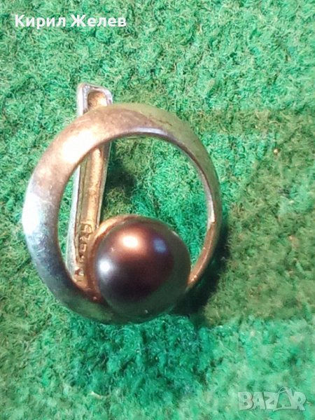 СТАРА ПЕРЛЕНА СРЕБЪРНА АРТ ДЕКО АНГЛИЙСКА ОБЕЦА ОКСИДИРАНО СРЕБРО 925 с НАТУРАЛНА ЧЕРНА ПЕРЛА 25720