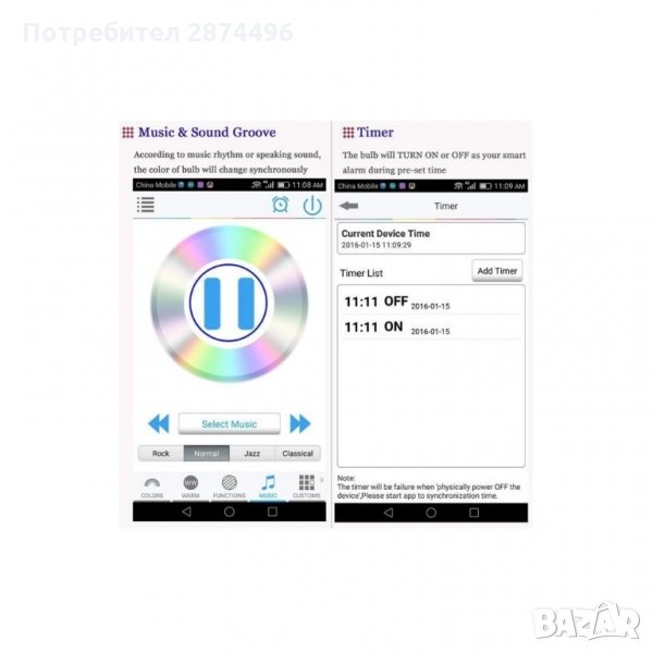 RGB ЛЕД лампа се свързва с вашия смартфон чрез Bluetooth и се управлява през мобилно приложение което е съвместимо с Android и IOS.