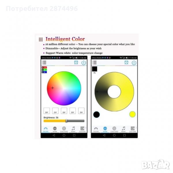 Многоцветна LED лампа с Bluetooth управление чрез APP приложение за мобилен телефон.