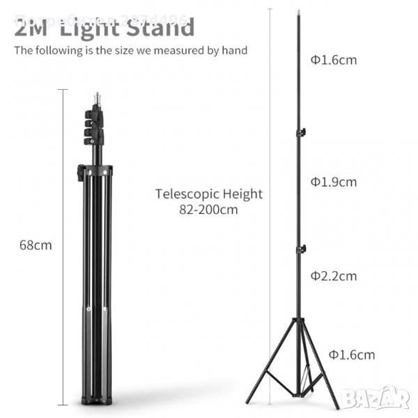 Регулиране на височината от 68 до 200 см.