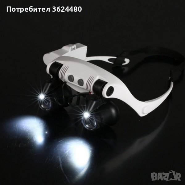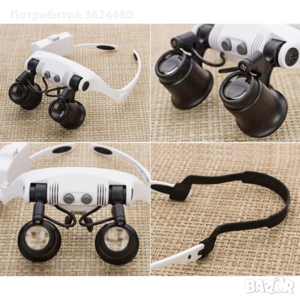 Очилата/лупата е подходящ ежедневен помощтник в бита и при работни дейности изискващи прецизност и добра видимост. Лупата е компактна и удобна за ползване – тип свободни ръце. Може да я ползате по време на часовникарство, брродерии, платки, електроника и изцяло финни ремонтни дейности. За по-добра видимост е снабдена с 2 LED светлини работещи със сменяеми батерии – CR1620. За още по-голямо удобство ъгъла на светлината може да се регулира.