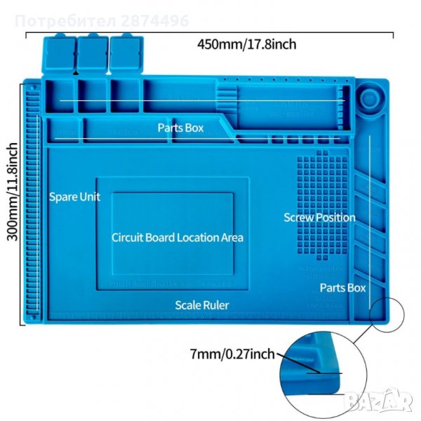 Подложка за запояване с линийка и магнитни зони за съхранение