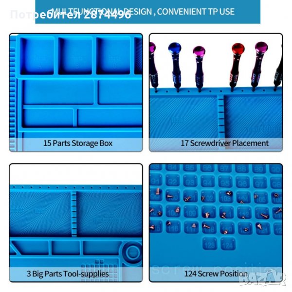 Силиконова подложка за запояване се предлага в два размера: 45x30см, 55 х 35 см. Издържа на високи температури до 500˚C. Подложката намира приложение в изработката на бижута. Разполага с линийка, отделни отделения и магнитни зони за съхранение. Силиконовата подложка за запояване предпазва работното Ви пространство от изгаряния. Помага да поддържате пространството си чисто и подредено. Не се хлъзга и е лесна за почистване.