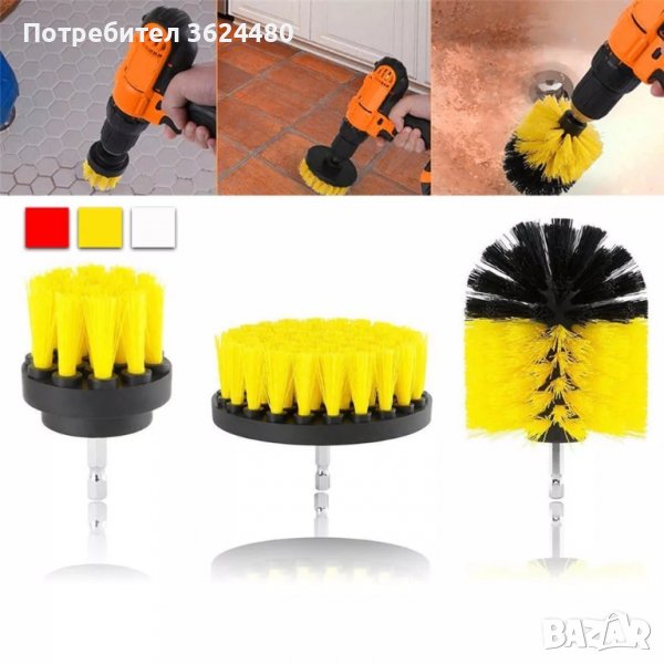 Този комплект е предназначен за почистване на автомобили, но намира приложение и в дома, гаража, офиса и т.н.. Той включва 3 четки, които отговарят на всички ваши изисквания за почистване. Тези четки са предвидени да се поставят на винтоверт или бормашина и така да улеснят почистването и да спестят време.