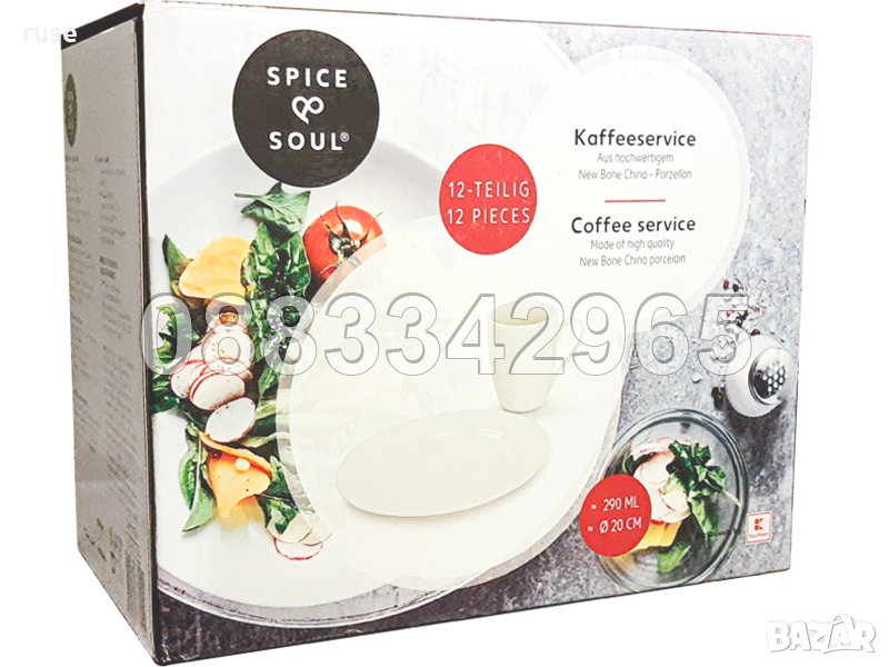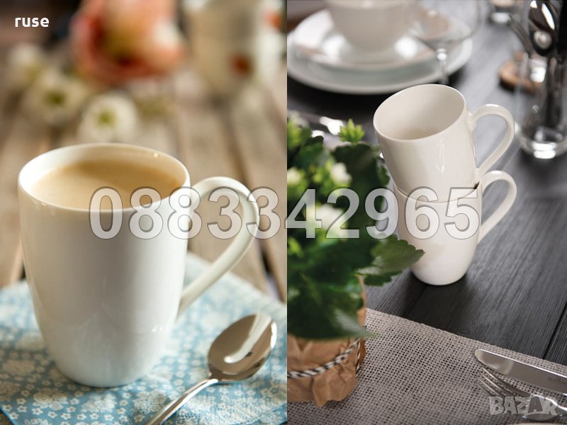 НОВ! Сервиз чаши за кафе и чинии за десерт костен порцелан 12 части