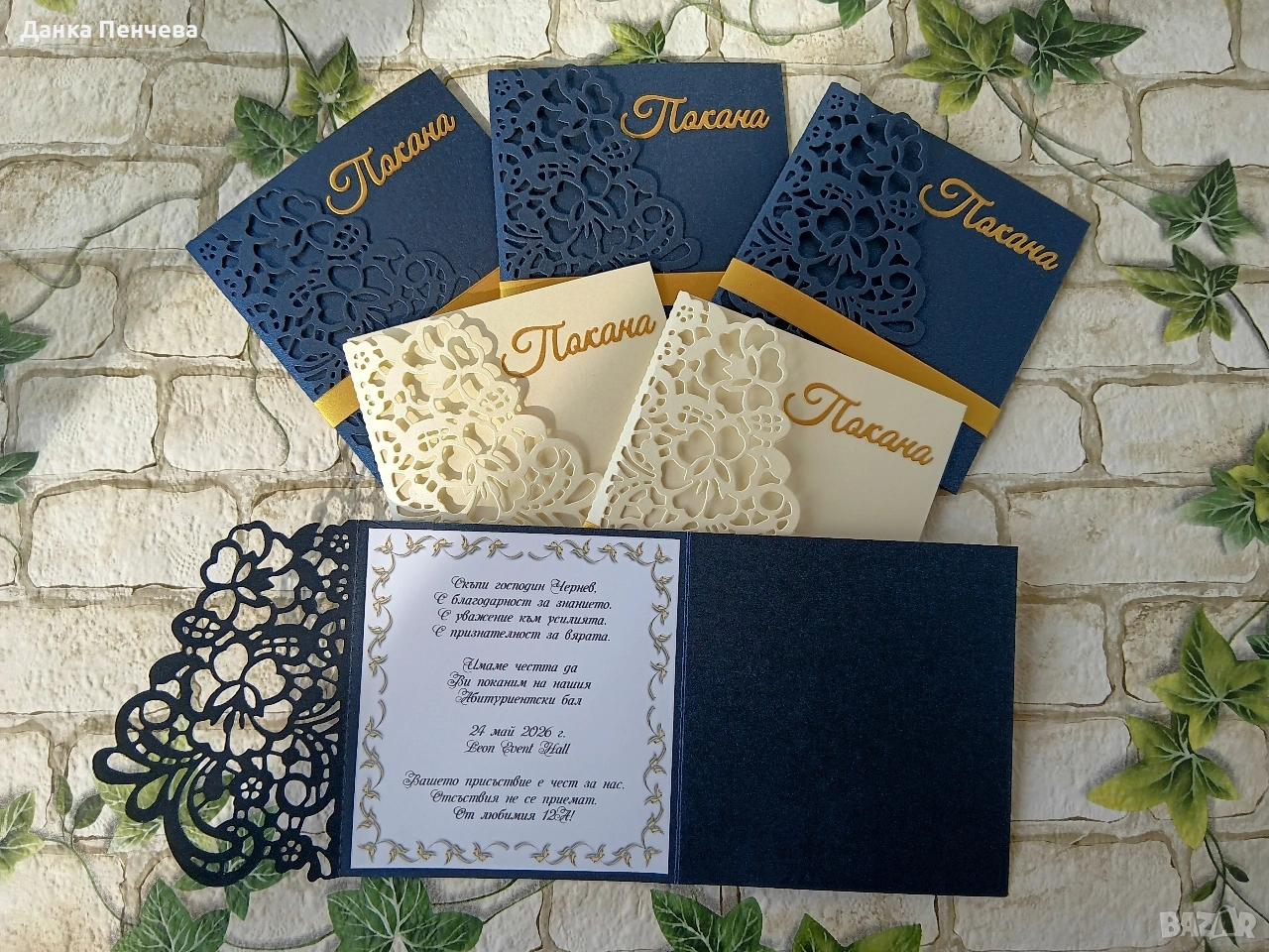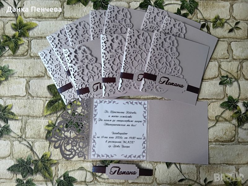 Цветовете могат да се изработят по Ваше желание. Изработват се от висококачествен перлен картон. В цената е включен и текст, черен печат.