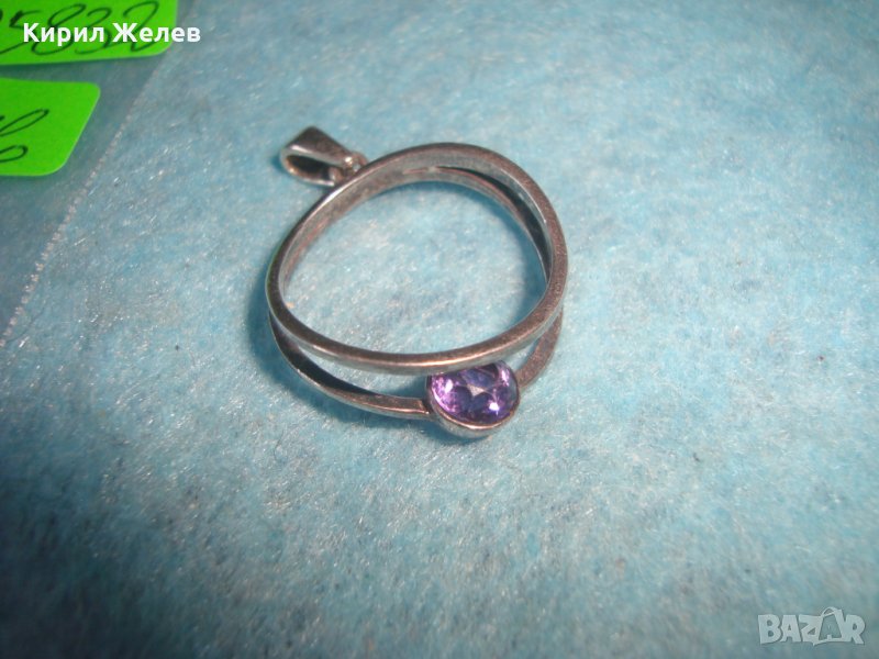 СТАР СРЕБЪРЕН АРТ ДЕКО МЕДАЛЬОН СРЕБРО 925 с ЮВЕЛИРНО ФАСЕТИРАН АМЕТИСТ 25832