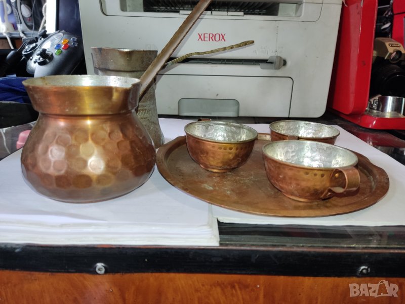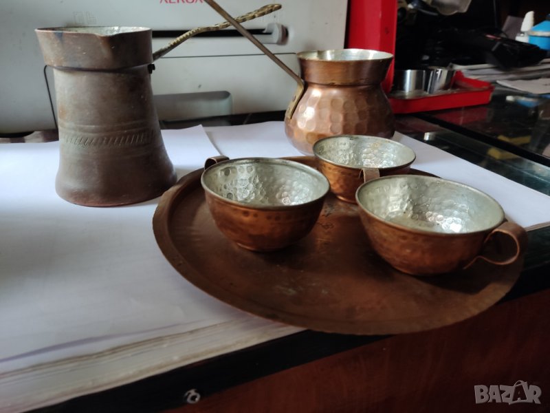 Мед, бакър. Продавам голям меден котел бакър Бакърен котел Медни поднос и чаши, ръчно ковани → Обява 35828366