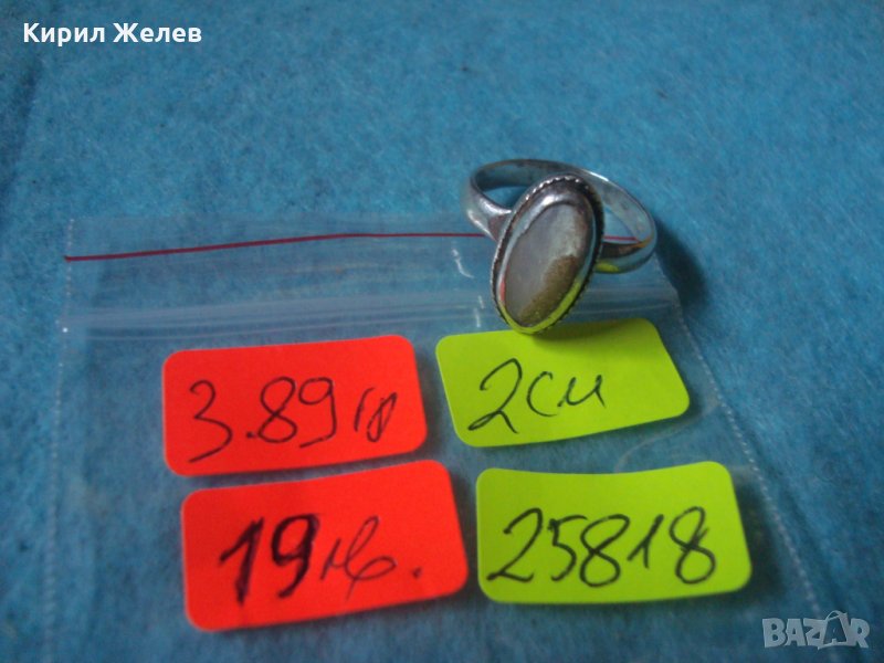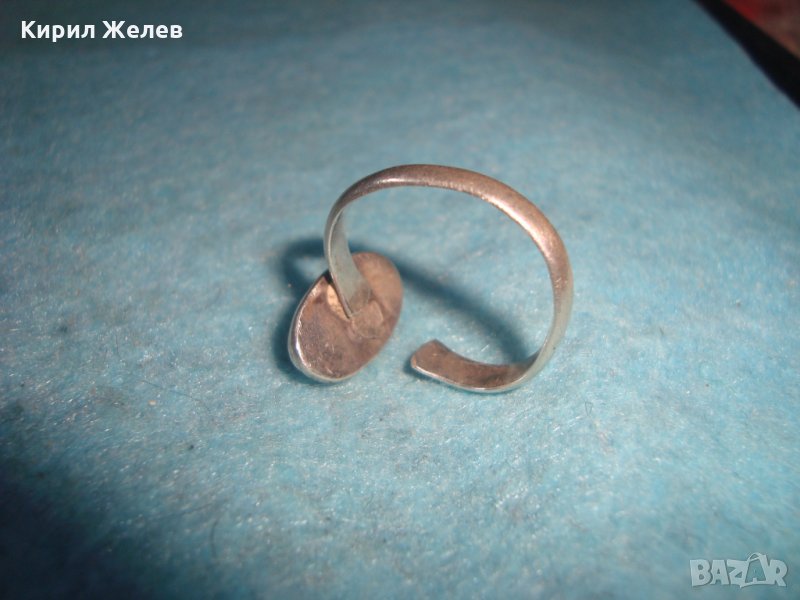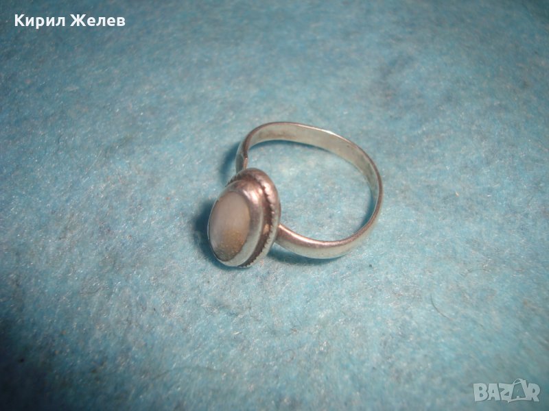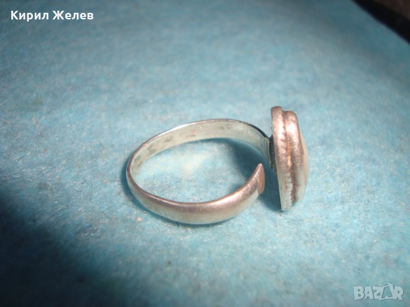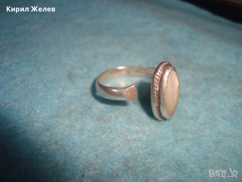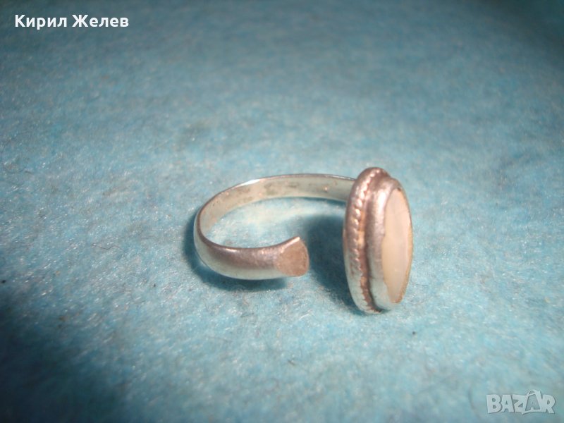 СТАР СРЕБЪРЕН СКЪПОЦЕНЕН АРТ ДЕКО ПРЪСТЕН СРЕБРО 925 с ШЛИФОВАН БЯЛ ИВИЧЕСТ АХАТ МАЙСТОРСКИ 25818