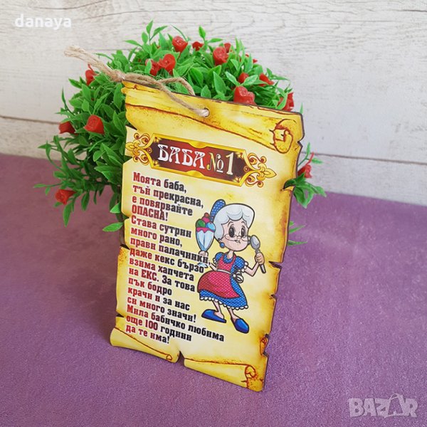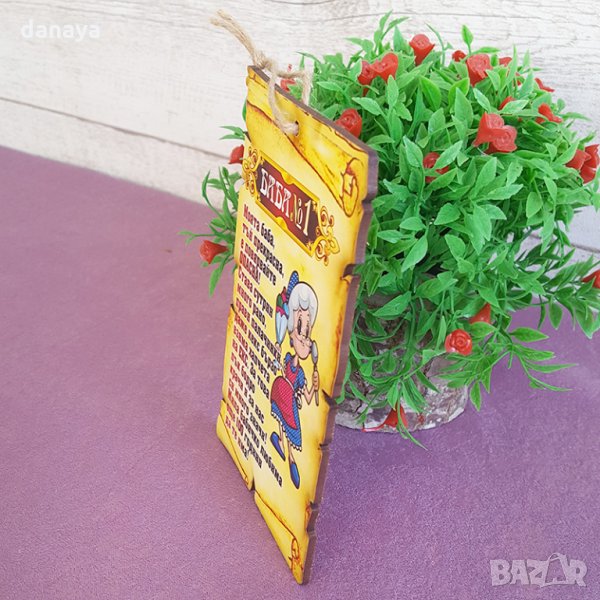 Декоративна дървена плочка сувенир под формата на папирус с пожелание за БАБА №1.