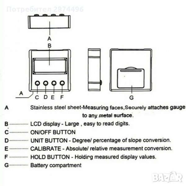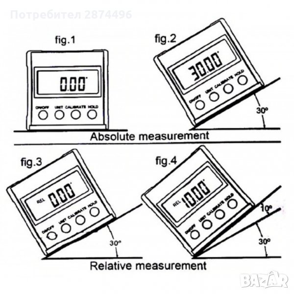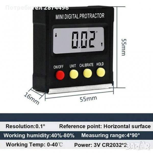 Електронен ъгломер и нивелир с магнитна основа - 1 бр.