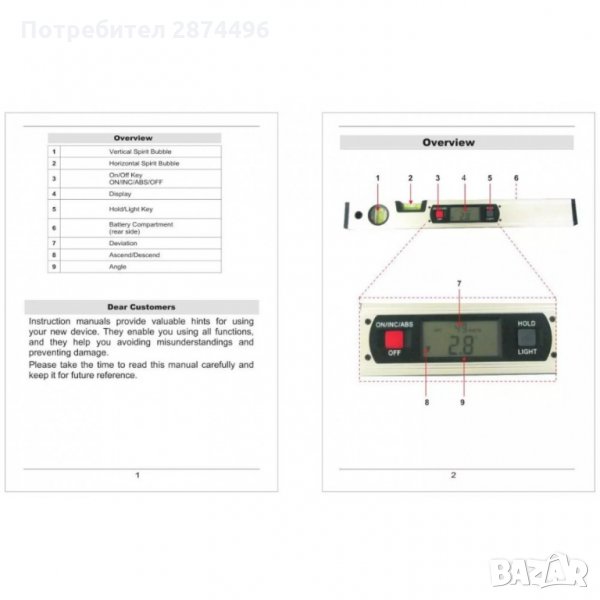 1 x Дигитален нивелир с инклинометър