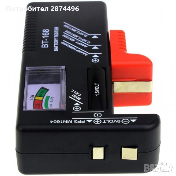Тестер за различни модели батерии на 1.5 волта и 9 волта. Лесно измерване чрез издърпване за точният размер