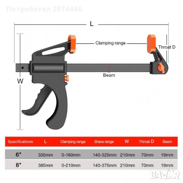 Бърза стяга с възможност за обръщане на челюстите за разтягане - 8 инча