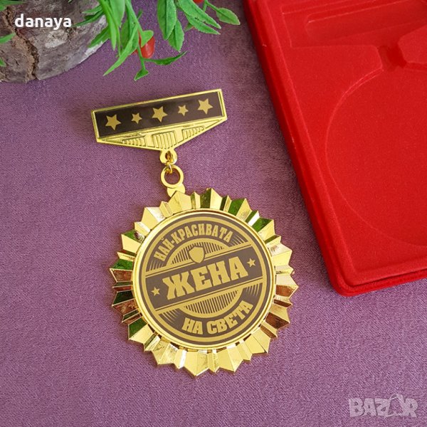 Изключително емоционален и оригинален подарък за любимата жена – орден с надпис “Най-красивата ЖЕНА на света”. Красив и запомнящ се подарък за Осми Март, Свети Валентин, рожден ден, годишнина и т.н. Предлага се в красива велурена кутия.