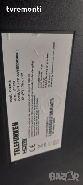 POWER BOARD, 17IPS72, for 43 inc DISPLAY Telefunken 43FN401A борда е гарантирано работещ Демонтиран от телевизор Telefunken модел 43FN401A с дисплей VES430QNDB-2D-N11 тествана от нашия техник