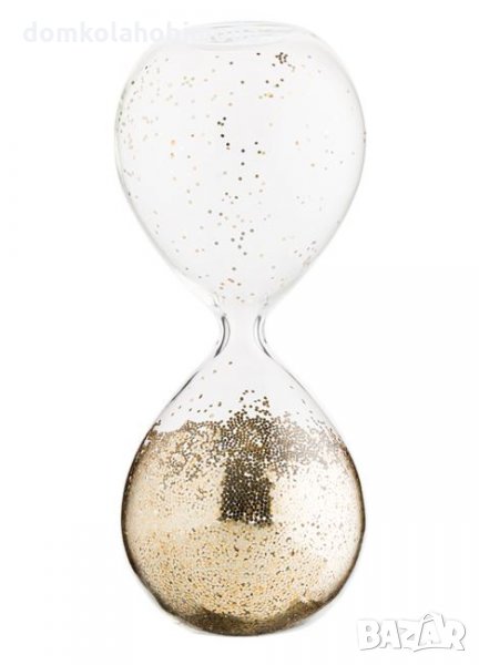 Стъклен Пясъчен часовник, пълен с златисти конфети, Стъклен, 6x17 см