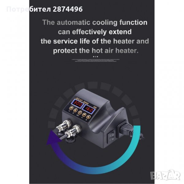 Пистолетът за горещ въздух работи в автоматичен и ръчен режим. Поялникът може да "заспи", ако не се употребява, като по този начин пести енергия. LED дисплеи за точни и ясни параметри.