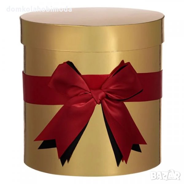 Кутия с 7 изкуствени рози, Червена панделка, 20x20 cm