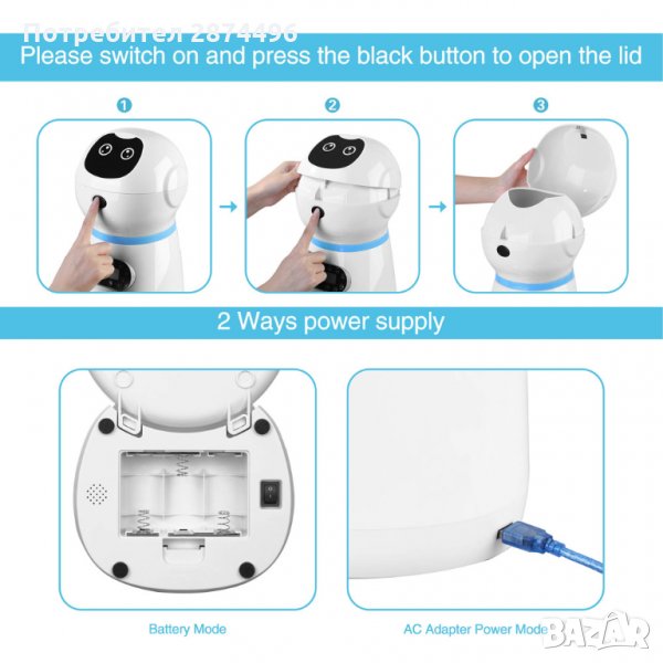 Захранването на хранилката може да бъде директно от електрическата мрежа посредством адаптер или с 3 бр. 9V батерии (не са включени в комплекта).