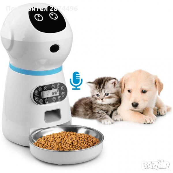 Автоматична хранилка с програматор за кучета и котки, за суха храна