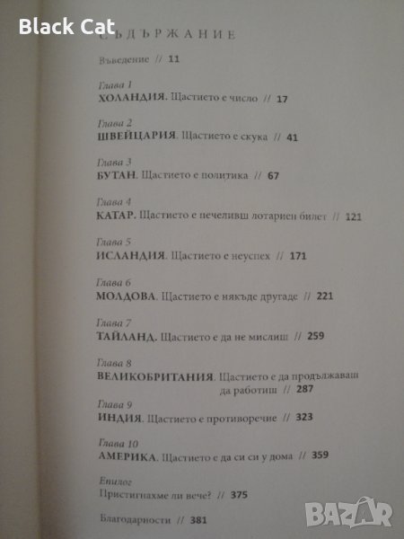 Преведеният на 19 езика бестселър на "Ню Йорк Таймс" – "География на блаженството", е увлекателен разказ, изтъкан от психология, геополитика, наука, пътешествия и хумор, един провокативен и забавен анализ на това, какво е щастието, какво не е и къде можем да го открием."