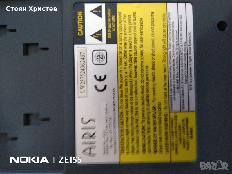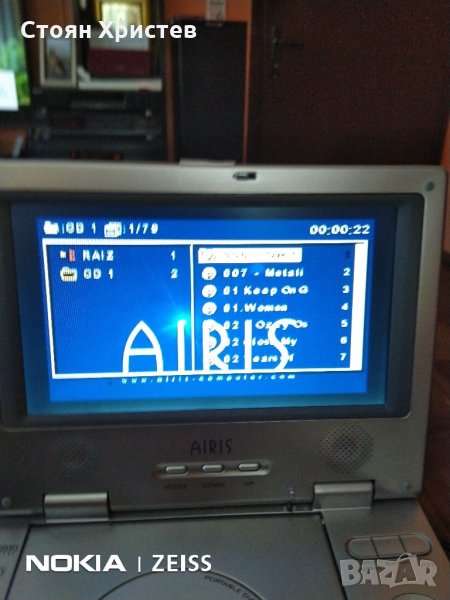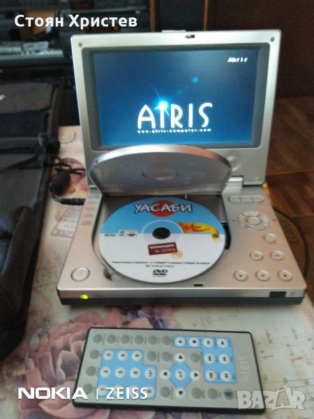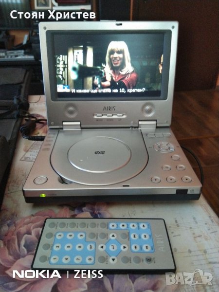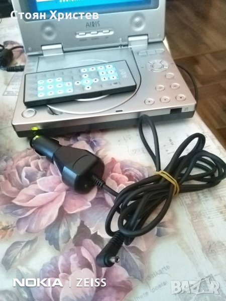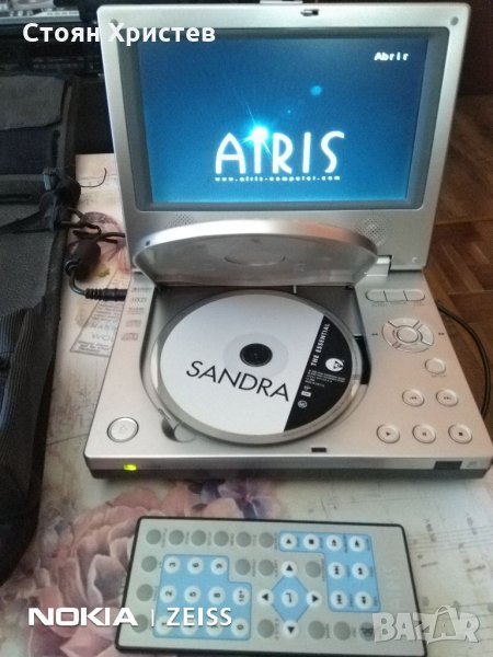 CD-DVD-MP3 плеър Airis,купен е от Испания!Може да се ползва и в автомобили с възможност за закрепяне за облегалката на седалката....идеално е за анимация за деца! DVD-то чете само оригинални дискове......CD-MP3 без проблем! Дистанционното не работи...