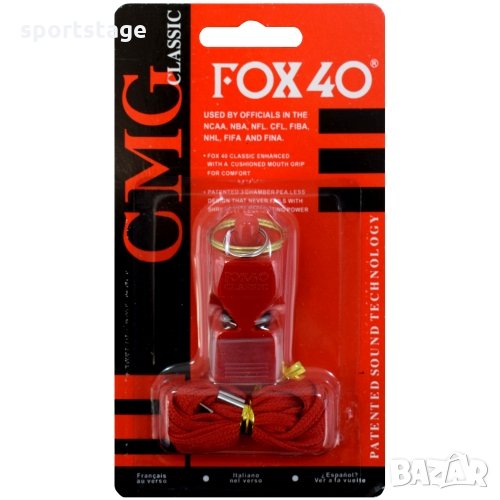 Свирка реферска FOX 40 с връзка и силиконов мундщук. Свирката е с халка и въже за окачане на врата. Подходяща за тренировки и мачове в различни спортове. Допълнителен силиконов мундщук. Артикулът се предлага на блистер. Материал - пластмаса. Тегло за 1 свирка - 25 г. Размери блистер - 16.5х9х3 см