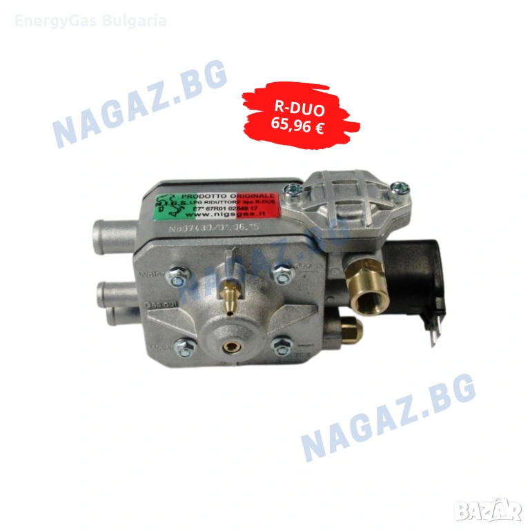 N.I.G.S. (North Italy Gas Systems) е с дългогодишен опит в производството на компоненти за автомобилни газови уредби, произведени изцяло в Италия. Въпреки компактните си размери, изпарителят R-UNO е подходящ за малки и средни двигатели до 200 к.с,изпарителят R-Due е подходящ за средни и мощни двигатели до 300 к.с,а R-TRE за мощни автомобили до 470 к.с! Всички те са придружени от температурен датчик и необходимите сертификати за безопасност и качество,както и 1 ГАРАНЦИЯ!