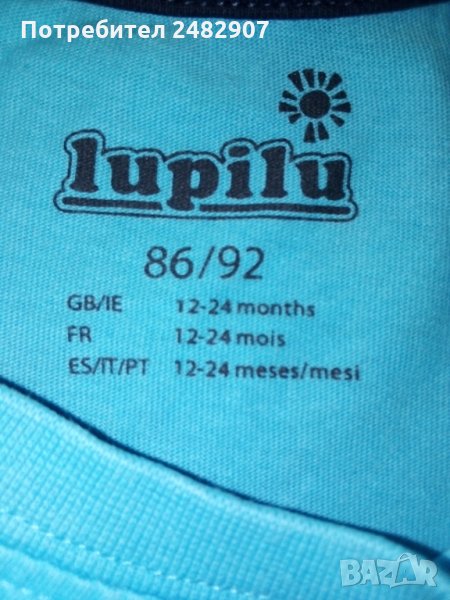 Детска тениска в синьо, 100 % памук. Много запазена, ръст - 86/92 см, за възраст - 12-24 месеца.