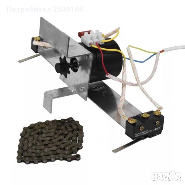 мотора е изработена от неръждаема стомана с два крайни изключвателя и окабеляване + верига, която се закрепя към люлките. Лесен монтаж. Закрепя се в горния край на задната или странична стена на инкубатора с три болта.Всеки клиент използва 10% отстъпка от цената на доставката с фирма ЕКОНТ!!! Или Спиди Пазарувайте с увереност!