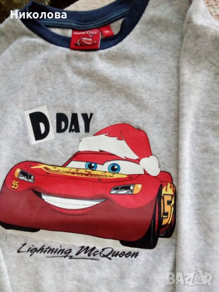 Пижама от две части,мека,плюшена за момче на 5/6 годинки с апликация червената кола от анимационно филмче.