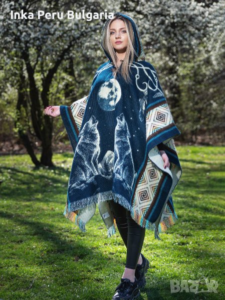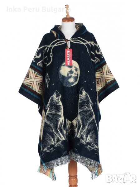 Автентичнo еквадорско унисекс вълнено пончо с вълци, различни цветове → Обява 35847418