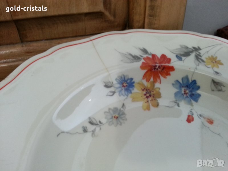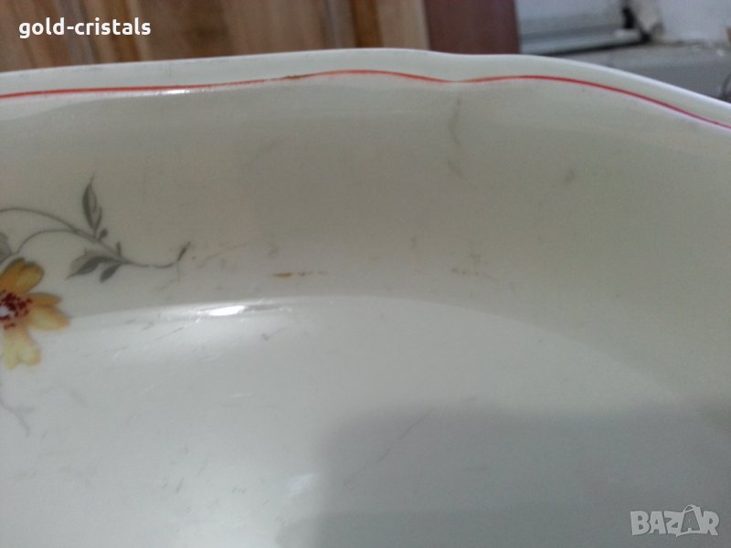 Антикварен порцелан чинии плитки за основно 5бр-90лв без забележки дълбоки 6бр -45лв следи от ползване и две имат пукнато снимки голямо кръгло плато -39лв голямо плато елипса -25лв сиви черти по порцелана снимки сервиз комплект сет лот ретро арт декор винтидж стил колекция стари антикварни предмети обзавеждане за дома и семейството подходящи за подарък за ценители и колекционери