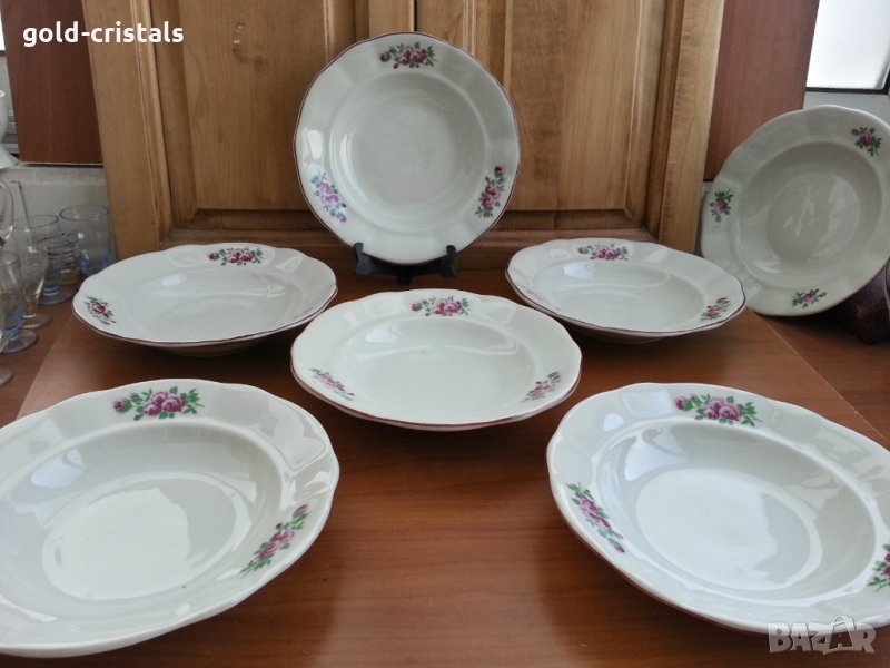 Стар български порцелан чинии дълбоки най-старите български чинии порцелан 6бр-38лв 1бр-7лв по различна без забележки сервиз комплект сет лот ретро арт декор винтидж стил колекция стари антикварни предмети обзавеждане за дома и семейството подходящи за подарък за ценители и колекционери